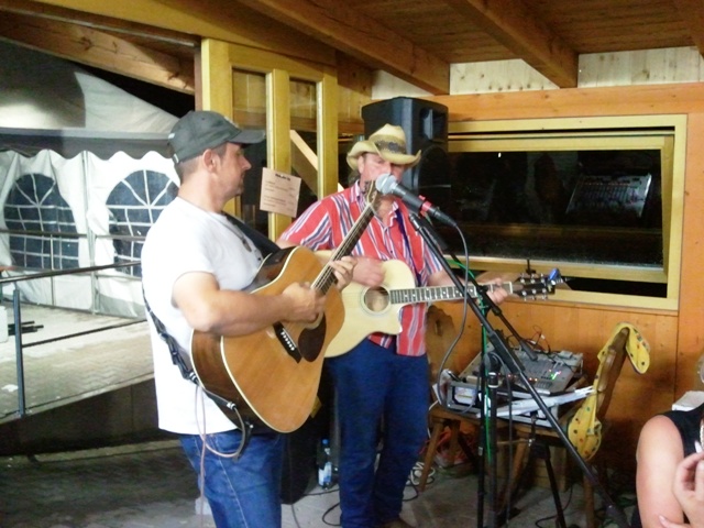 Im Innenbreich ging die Veranstaltung dann weiter, begleitet von diversen Stromausfaellen wegen des tobenden Unwetters.Travis und Tom gestalteten den Abend ab diesem Zeitpunkt mit ihren Akkustik-Gitarren weiter und es wurden trotz Sauwetters noch gemuetliche Stunden. Ein rundum gelungenes Fest, wie auch die zahlreichen Gaeste befanden.